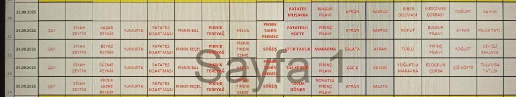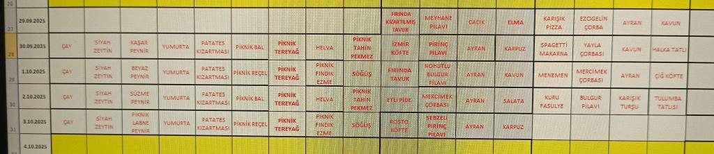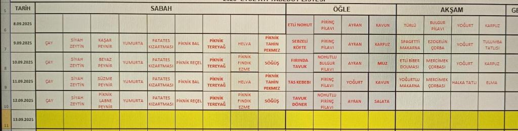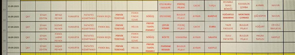 Eylül Ayı Yemek Listesi