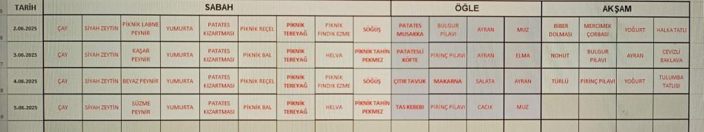 Haziran Ayı Yemek Listesi