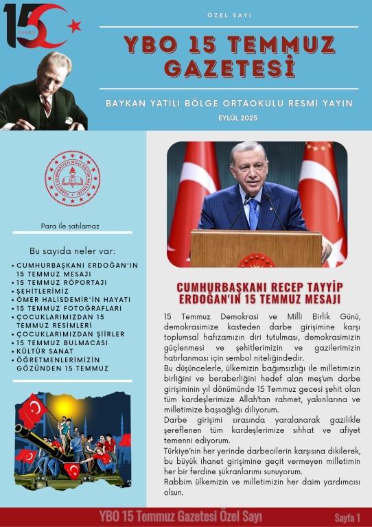 15 TEMMUZ DEMOKRASİ VE MİLLİ BİRLİK GÜNÜ